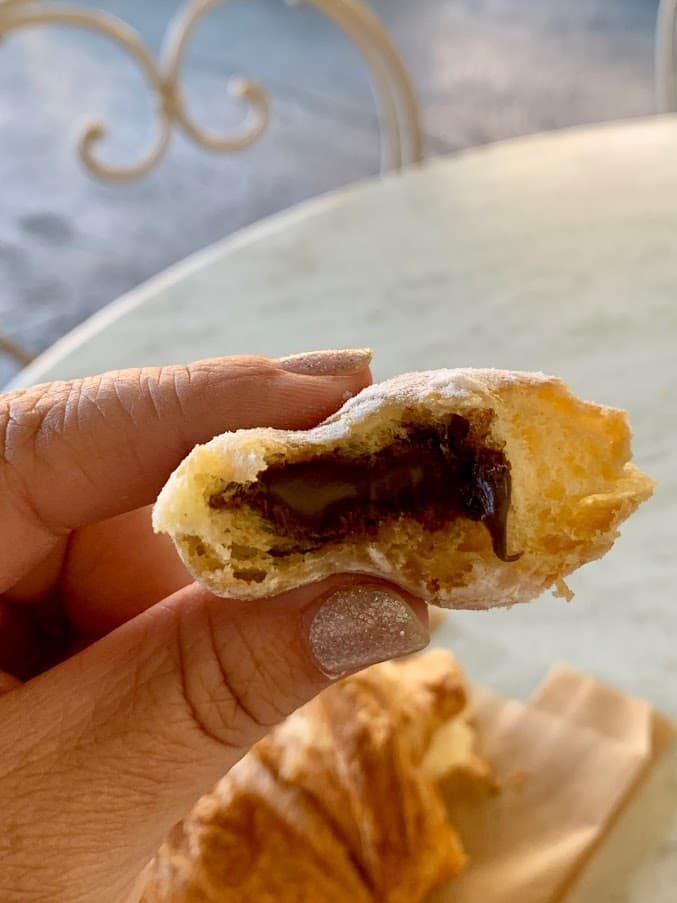 Speaking of nutella, there are also packs of six small beignets filed with the gooey stuff at a cost of $3.85. It might surprise you that they are served cold, unlike the piping hot beignets at DLR.