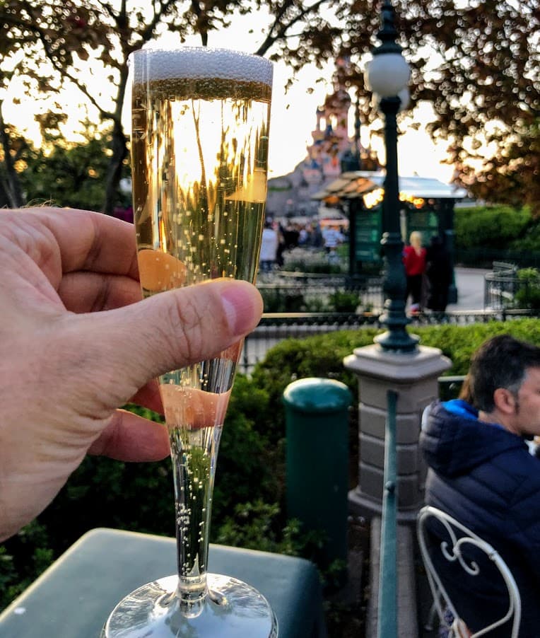 Imagine you're at Disneyland. The sun is setting and you’re seated comfortably at a table near the hub at the end of main street. The castle is in view, fireworks are scheduled to begin soon, and you’re holding a glass of champagne. It’s not a dream- this is possible at Disneyland Paris, as seating is plentiful and alcohol is readily available throughout both parks.