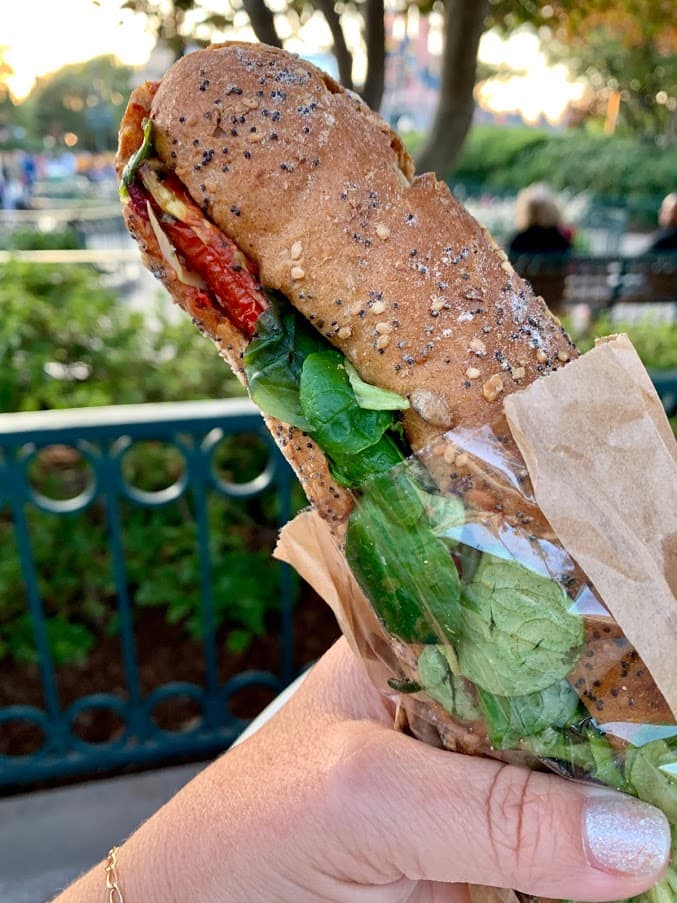 There are lots of grab and go sandwiches available at Disneyland Paris. I don't know about a lot about wine pairing but I think a crusty sandwich loaded with veggies goes great with champagne and fireworks.