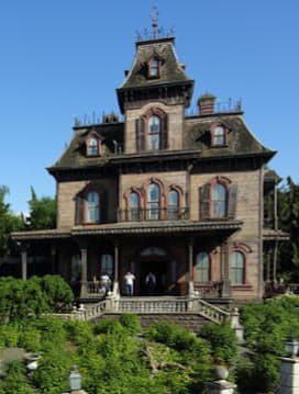 Phantom Manor (Haunted Mansion) has a completely different style house that looks quite run down. The music is more ominous. I initially thought the story focused on our killer bride, as it's clear her groom dies mysteriously on their wedding day. However, in doing a little more research, it seems a phantom is responsible for the groom's demise and the poor bride is left at the altar, waiting for eternity. My interpretation of the Haunted Mansion at DLR is that the ghosts are impish and somewhat jovial, whereas the ghosts at Phantom Manor are far more nefarious.
